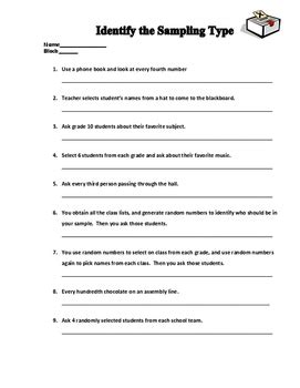 Identifying Sampling Methods Worksheet. If a sample isn't randomly selected, it will probably be. 1 in each of the following examples, identify the sampling method being used.
